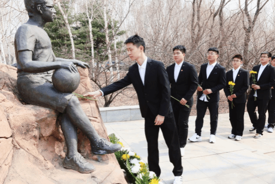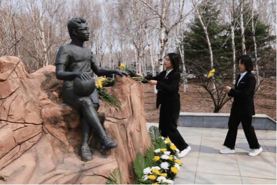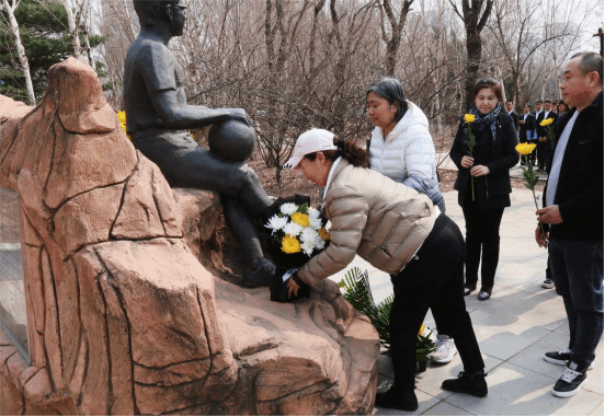 电力学院领导老师、学生代表陪同张程同学的母亲一起向雕像敬献鲜花。