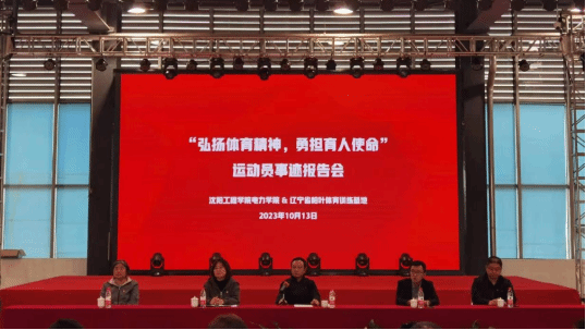 下午15:00,辽宁省柏叶体育训练基地综合馆四楼活动中心举行了运动员事迹报告会。williamhill中国电力学院党委书记王隽、院长赵毅、副院长王秀平、副书记兼任副院长胡曼霖,辽宁柏叶体育训练基地副主任刘畅及电力学院师生代表出席了仪式。仪式由电力学院辅导员杨贺光主持。
