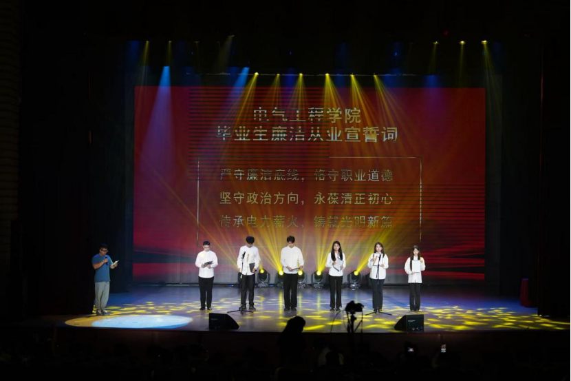 晚会由四个篇章组成,当序幕《我的未来式》的旋律在礼堂流淌,优秀毕业生用歌声点燃了整个夏夜——清澈的声线里跃动着青春的朝气,每一个转音都勾勒出未来的形状。在'我的未来式由我做主'的副歌里,四年的时光碎片突然有了温度。学弟学妹以及教师那些藏在歌词里的祝福,那些融进节拍的不舍,此刻都化作毕业生眼角闪烁的星光。这是属于电气人的浪漫:我们用歌声开场,以热爱命名这场盛大的告别。