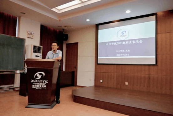 为促进新生家长对学院培养计划、教学理念、学生管理等方面了解,加强家庭教育与学校教育的高效衔接,更好地服务学生成长成才。2023年9月8日下午,电力学院在国际教育学院322报告厅举办2023级新生家长会。本次家长会通过网络直播同步进行,现场参会家长130余人,网络直播参会家长200余人。本次家长会由电力学院党委副书记、副院长胡曼霖主持。电力学院院长赵毅对学院历史沿革、师资力量、学科成就、人才培养、学生工作队伍、学生教育管理等方面进行了全面、详实、细致的介绍。