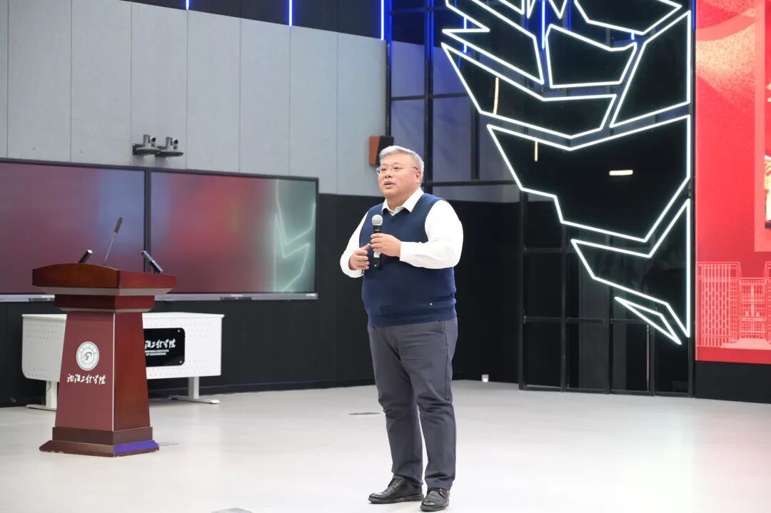 李用成董事长走上报告席,为在场的师长和学弟学妹带来了一场发自肺腑、感人至深的报告。他没有讲述高深的管理哲学,而是像一位归家的兄长,分享成长路上的坎坷、抉择时的勇气、成功后的思考以及对母校永恒的感恩。他谈到,设立奖学金,是希望能为追梦的学子减轻一丝负担,增添一份动力;他勉励大家,要珍惜在校时光,夯实专业根基,更要培养家国情怀与担当精神。“无论你们将来飞得多高、走得多远,母校永远是你们的精神家园和坚强后盾。”朴实而有力的话语,激起经久不息的掌声,许多学子眼中闪烁着感动的泪光与奋进的火焰。