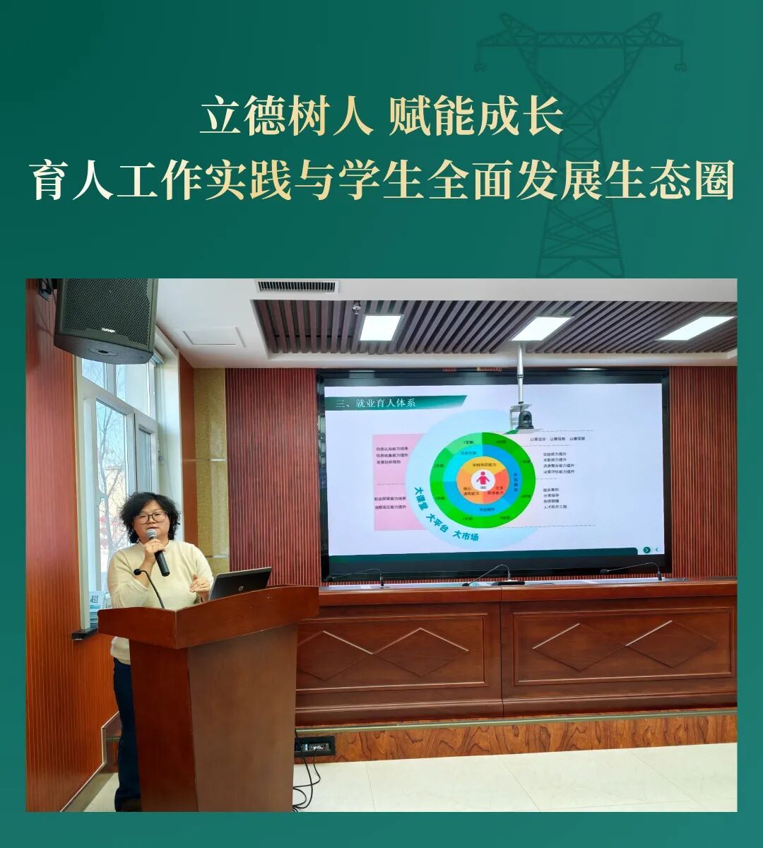 在谈及就业育人时,王祎雪提出了 “双向聚焦,精准导航” 的差异化推进策略:倡导学生 “向内求” ,深度挖掘自身兴趣与优势,夯实核心竞争力;建议家长 “向外求” ,积极了解行业发展与政策动态,提供理性支持。学院将在此过程中提供全程赋能,特别是针对国家电网等重点就业方向,深入解析报考策略与备考路径,全力护航学子“一次上岸”。