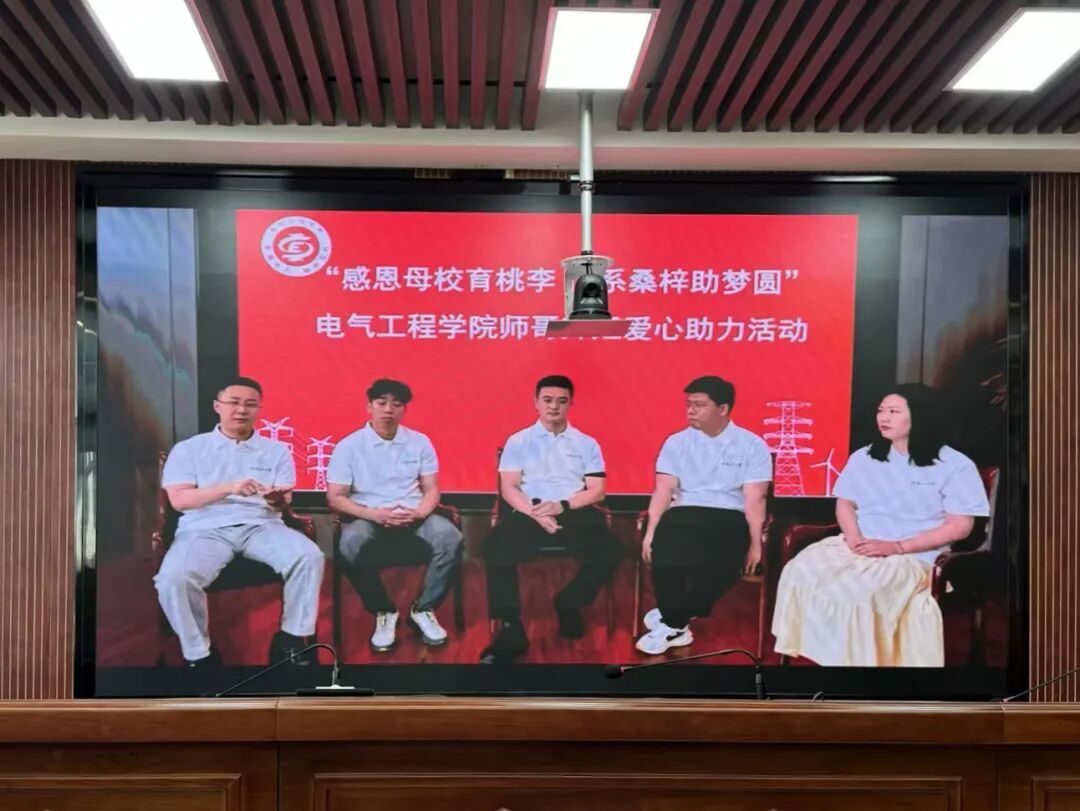 他重点分享了以奖学金和专项支持项目为核心的“发展型资助”育人实践。王伟指出,学院不仅通过助学金、励志奖学金等资助、奖励表现优秀的贫困学生,更依托校友和社会资源设立了“辽宁送变电”“满天星”“发电924”等专项资助,鼓励学生将经济压力转化为成才动力。他结合往届受助学生逆袭成才、投身电力行业基层建功立业的生动案例,说明了资助工作如何从“经济帮扶”迈向“价值引领”,真正实现“解困—育人—成才—回馈”的良性循环。最后,朝阳家庭共同观看由谢雨兵等五位校友共同发起的“满天星”资助项目专访视频。