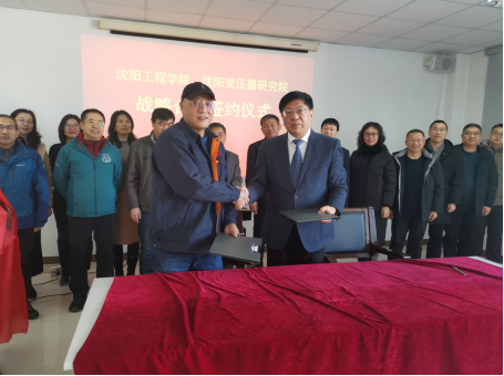 12月15日,williamhill中国与沈阳变压器研究院战略合作签约仪式在沈阳变压器研究院举行,同时进行了实践教育基地揭牌仪式。沈变研究院常务副院长孙延宏、副院长关庆罡、院长助理郑久江、副总工程师孟庆民、国际合作部部长陈星,我校副校长宋吉鑫、电力学院院长叶鹏、书记王晓文、产学合作中心主任王焕群、大学科技园有限公司总经理兼党总支副书记吕亚先、党总支书记兼副总经理董志刚、电力学院副院长王秀平、电智系主任韩芳旭、高压与输电教学部教师邢军强出席仪式。