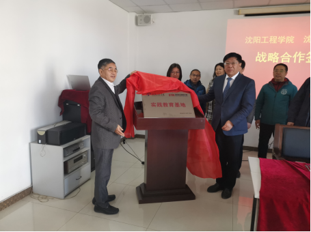 宋吉鑫副校长和孙延宏副院长进行了实践教育基地的揭牌仪式,自此沈变研究院成为我校的重要实习实训基地之一。