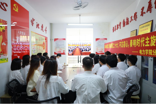 喜迎二十大,奋进新征程。中国共产党第二十次全国代表大会于10月16日上午10时在北京人民大会堂开幕,习近平总书记代表十九届中央委员会向大会作了报告。电力学院党委高度重视、精心组织全院教职工、学生党员、干部以及部分学生代表收看党的二十大开幕会的直播。采用集体收看和自学的方式。集体收看分两个会场,第一个会场地点在教工党员活动室,参加人员是党委委员、各支部书记、全体辅导员;第二个会场地点在宿舍楼十一舍学生党员活动室,参加人员是部分学生党员、学生干部、学生代表。其他教师和学生分别在家和寝室通过电视、网络观看了直播。