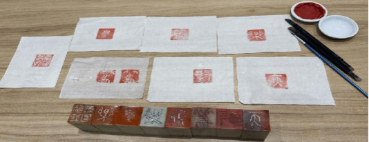 电力学院教师王亮讲解了篆刻技艺起源和技艺;信息学院教师张融雪实际动手操作演示了篆刻的技艺过程;大家一边观看篆刻技艺的视频,一边动手篆刻印章。各位老师以教育家精神--“心有大我、言为士则、启润心智、勤学笃行、乐教爱生、胸怀天下”为篆刻印章的内容,开始学习尝试篆刻,老师们跃跃欲试,手握刻刀,全神贯注于印面上,大家从章法的筹布、印石的整平、上石、刻制与修整认真完成每个步骤,一笔一刻感受着中华艺术文明,印章在刻刀下慢慢呈现。老师们初次体验篆刻,但他们发挥创意,对印面进行设计创新。也通过练习逐渐掌握了执刀、运刀等篆刻要领,手中的刻刀越来越得心应手。大家边刻边交流,增进了解,活动现场气氛活跃,洋溢着浓厚的文化氛围。