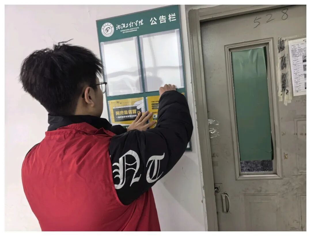 为维护整洁有序的校园环境,学院组织学生志愿者对教学楼公告栏开展专项清理。志愿者们分工协作,清理过期张贴物、擦拭公告栏板面、规整有效信息,让公告栏环境焕然一新,为同学们查阅信息提供了便利,以实际行动践行服务宗旨