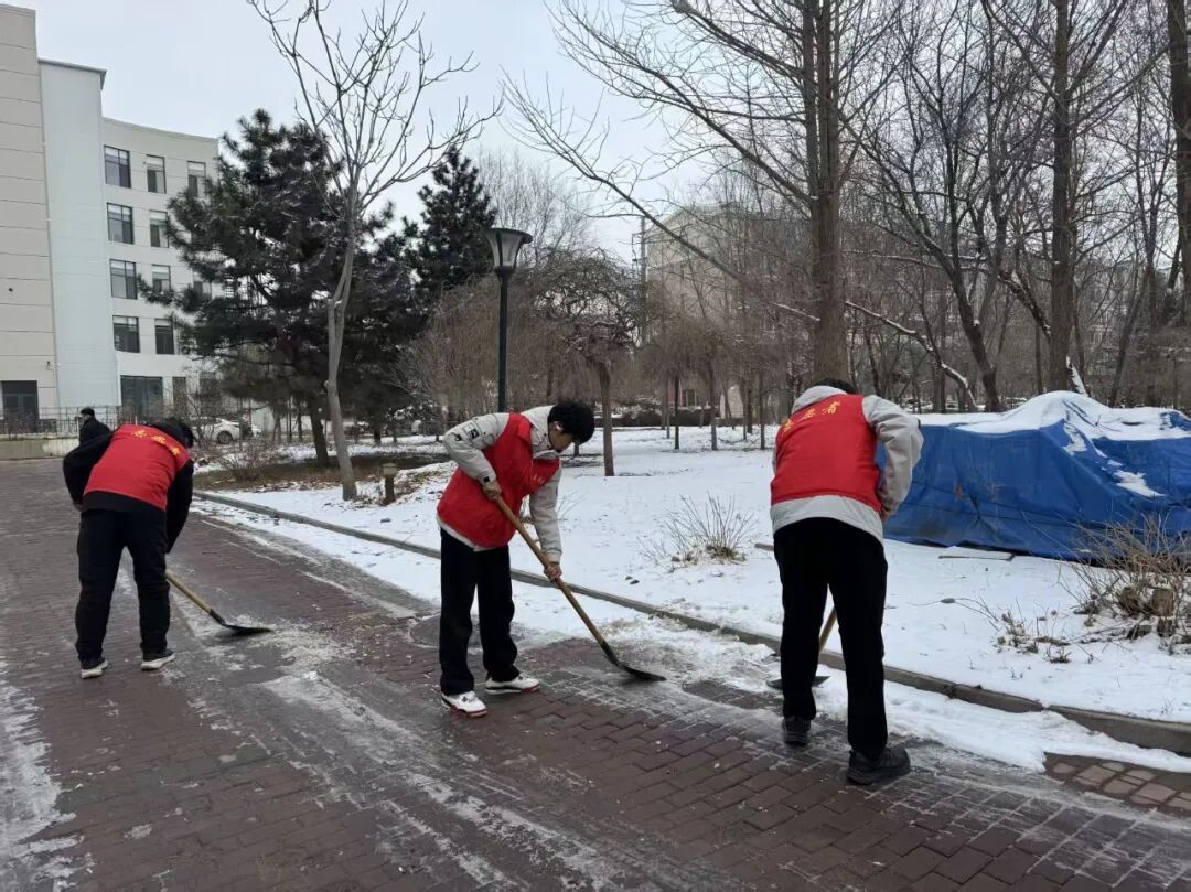 Williamhill中文30余名学生志愿者走进学校周边社区,开展除雪护行志愿服务活动。大家身着红色志愿马甲,迅速投入清雪工作。经过奋力清扫,社区主要道路积雪被清理干净,为居民出行开辟出安全通道。青年学子用行动诠释奉献精神,以担当温暖寒冬。