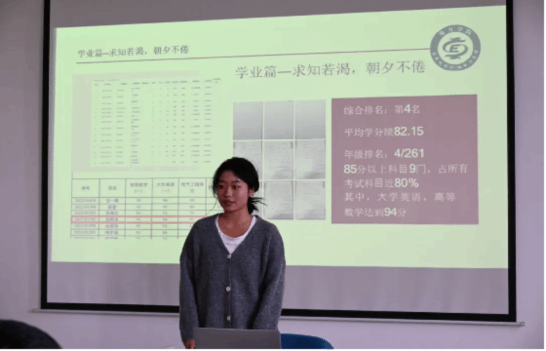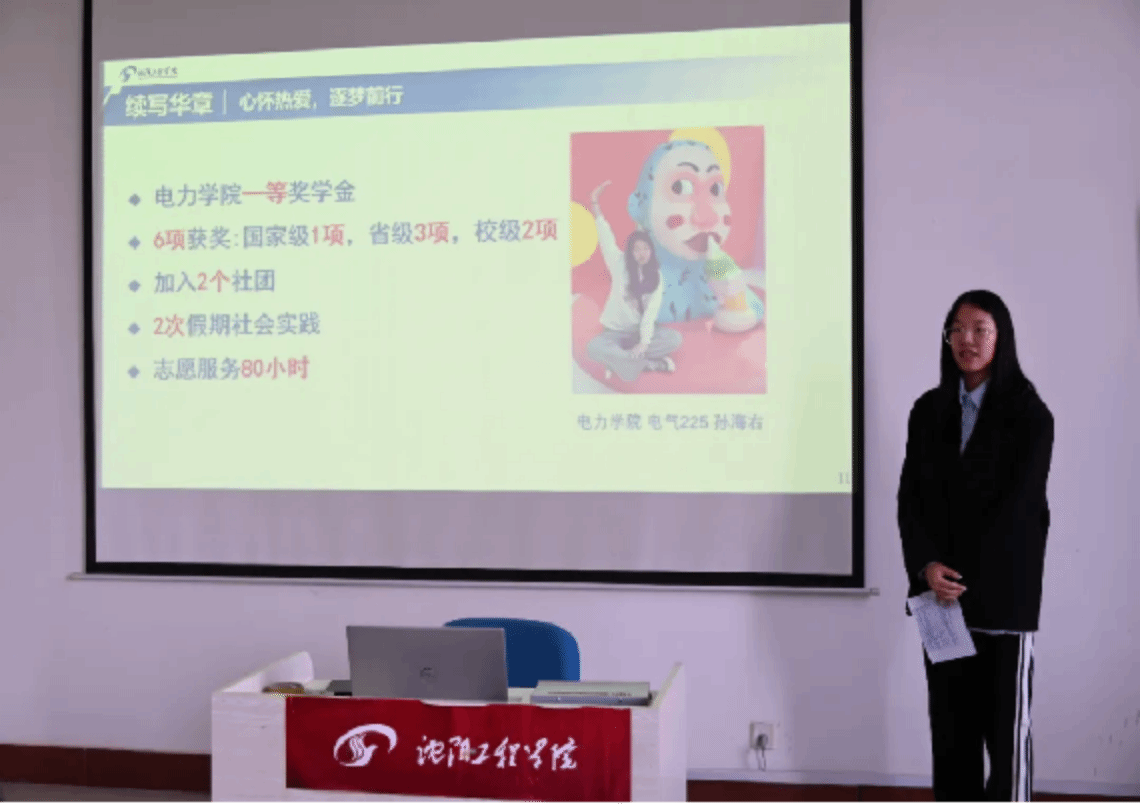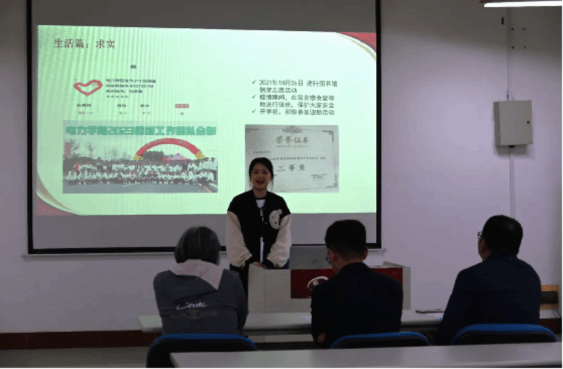 经过前期个人申报、资格筛选出的优秀学生们依次上台,分别从思想政治、专业成绩、志愿活动、社会实践、创新创业竞赛等方面展示自我。在答辩过程中他们充分展示了电力学子丰硕的学习成果、良好的语言表达能力和缜密的逻辑思维能力。